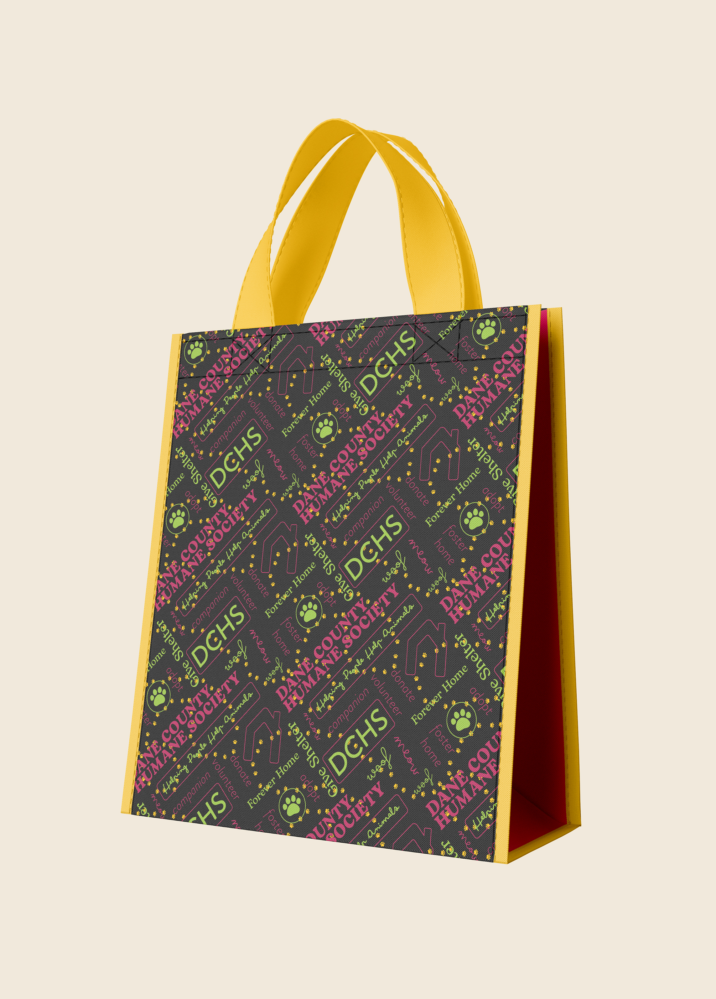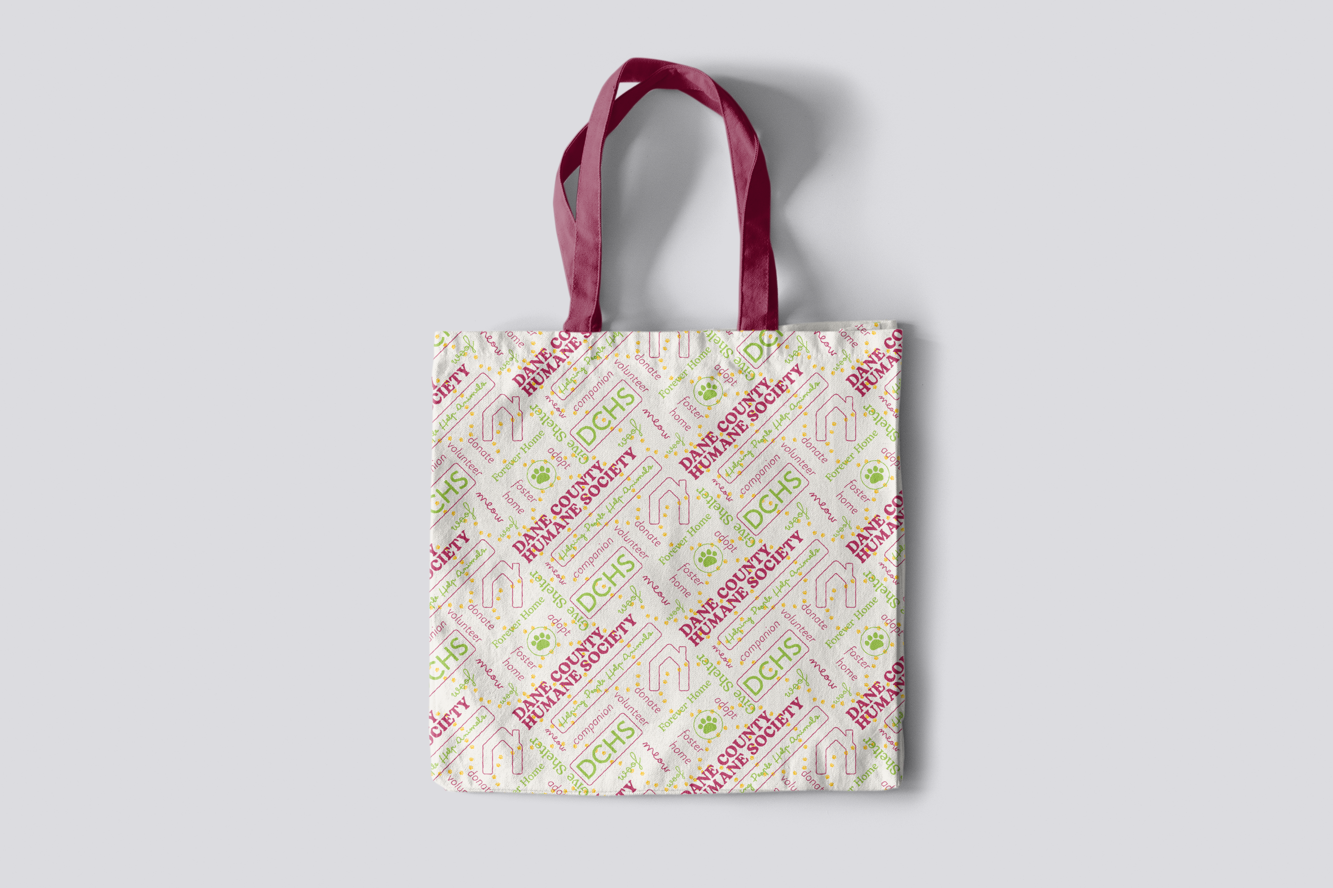 Decorative typography pattern for Dane County Humane Society using taglines and colors from their media kit. Project given by Madison College.